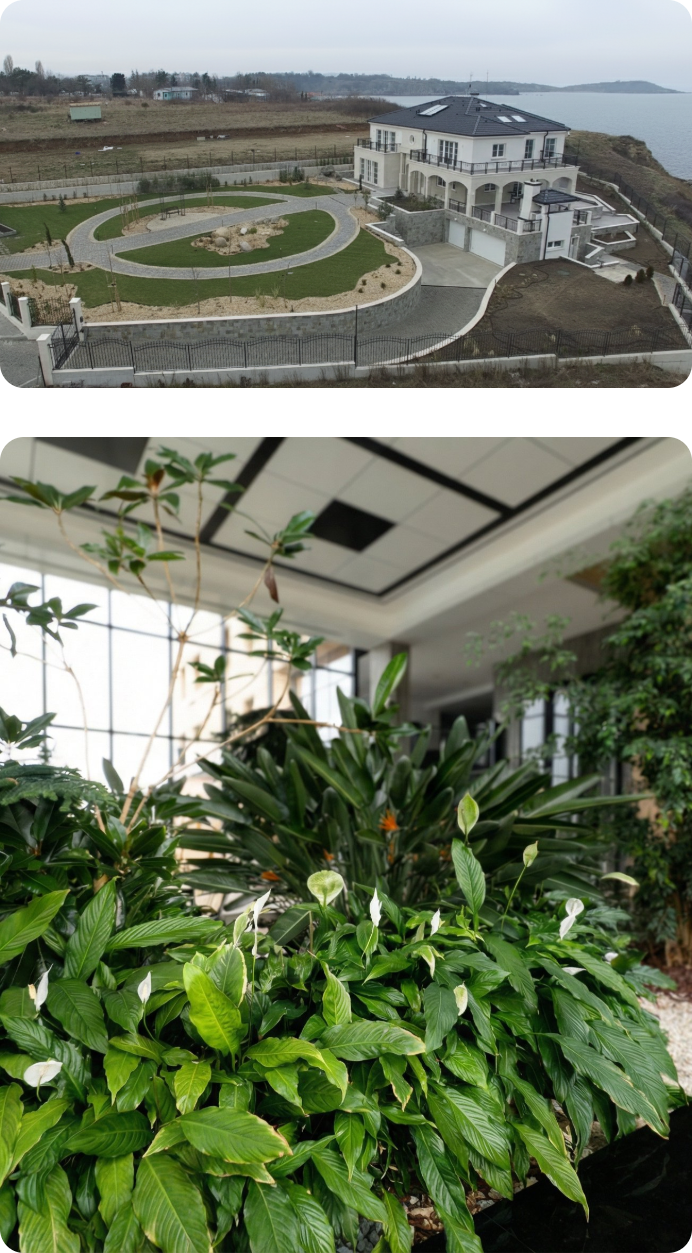 Разполагаме със собствено производство и база, екип от ландшафтни архитекти, строителни специалисти и градинари, което ни позволява да поемем целия процес – от проекта до поддръжката.