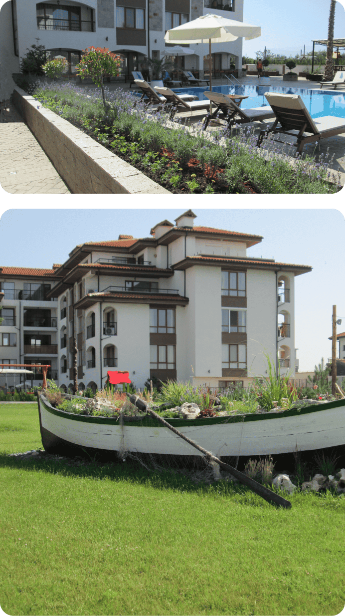 Разполагаме със собствено производство и база, екип от ландшафтни архитекти, строителни специалисти и градинари, което ни позволява да поемем целия процес – от проекта до поддръжката.
